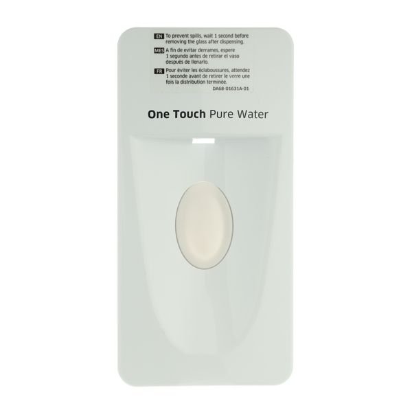 Overlay cover dispenser assembly for some models of Samsung fridges. There are no associated instructions for this part. Search RF221NCTABC-AA-01 RF221NCTASR-AA-01 RF261BEAEBC-AA-01